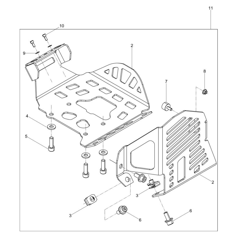 The Motor Protection Assembly for the Wacker BS72-4As Trench Rammer is designed to safeguard the engine from damage during operation. This assembly includes essential components such as covers, brackets, and fasteners, ensuring the motor is shielded from debris and impact. Genuine Wacker Neuson parts ensure compatibility and reliability for optimal performance.