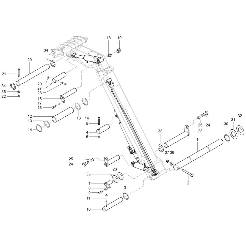 The Mounting Assembly for the Wacker TH627 Telehandler is designed to ensure secure attachment and optimal performance. It includes essential components such as brackets, bolts, and fasteners, which are crucial for maintaining the structural integrity of the telehandler. This assembly supports the machine's operational efficiency and reliability, making it a vital part of routine maintenance and repair.