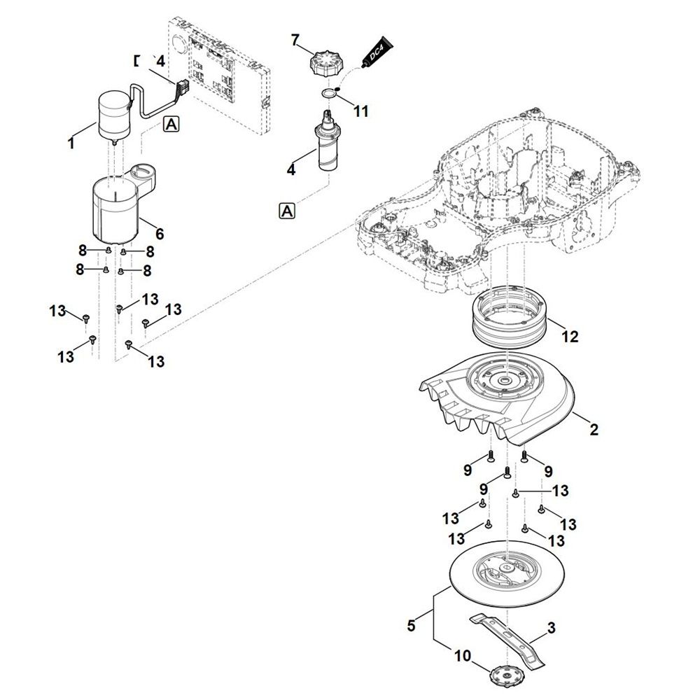 The Mowing Deck and Height Adjustment assembly for the Stihl RMI 422.2 P Robotic Mower ensures optimal cutting performance and adaptability to various grass heights. This genuine Stihl component is essential for maintaining the mower's efficiency and precision. The assembly includes key parts such as the deck, height adjusters, and connecting elements, designed to withstand regular use and environmental conditions.
