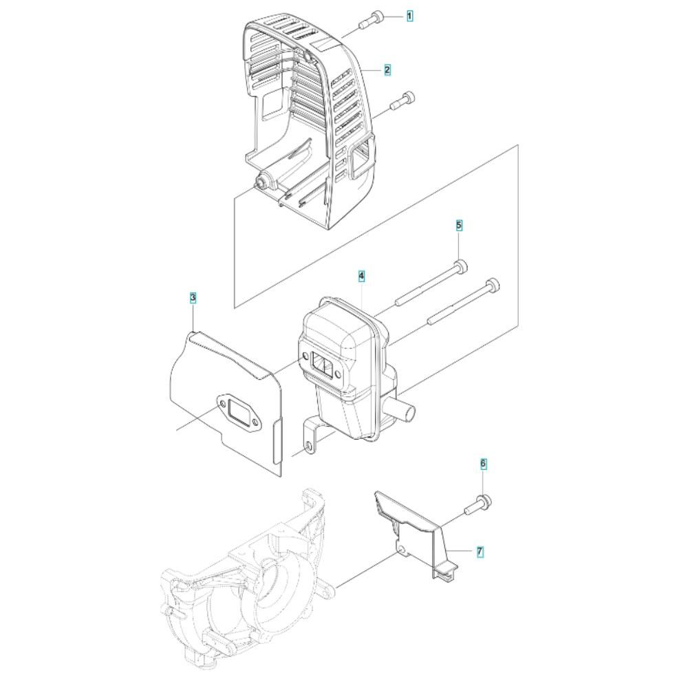 The Muffler Assembly for the Husqvarna 143RST Brushcutter is designed to ensure optimal exhaust flow and noise reduction. This assembly includes key components such as the muffler body, gaskets, and mounting hardware, all essential for maintaining engine efficiency and performance. Genuine Husqvarna parts ensure compatibility and reliability for your brushcutter.