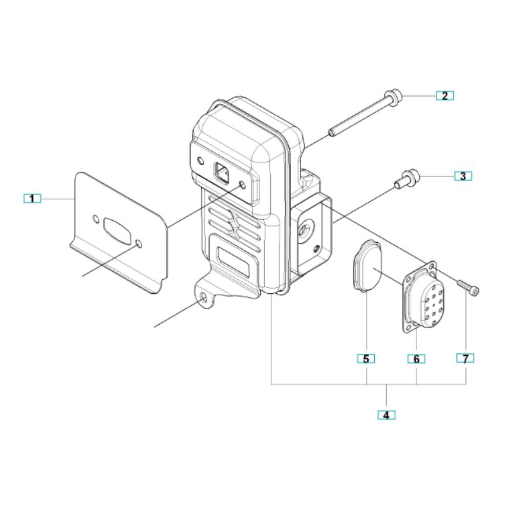 The Muffler Assembly for the Husqvarna 350BF Blower is designed to ensure optimal exhaust flow and noise reduction. This assembly includes components such as the muffler body, gaskets, and mounting hardware, all essential for maintaining the blower's performance and longevity. Genuine Husqvarna parts guarantee compatibility and reliability.