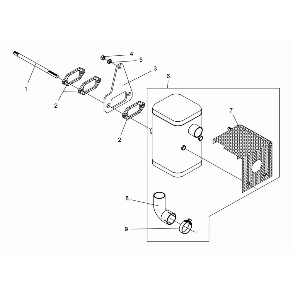 The Muffler Assembly for the Wacker DPS2050 Plate Compactor is designed to reduce noise and emissions, ensuring efficient operation. This assembly includes components such as the muffler body, gaskets, and mounting hardware, all essential for maintaining optimal performance. Suitable for routine maintenance and repair, it helps prolong the life of your compactor.