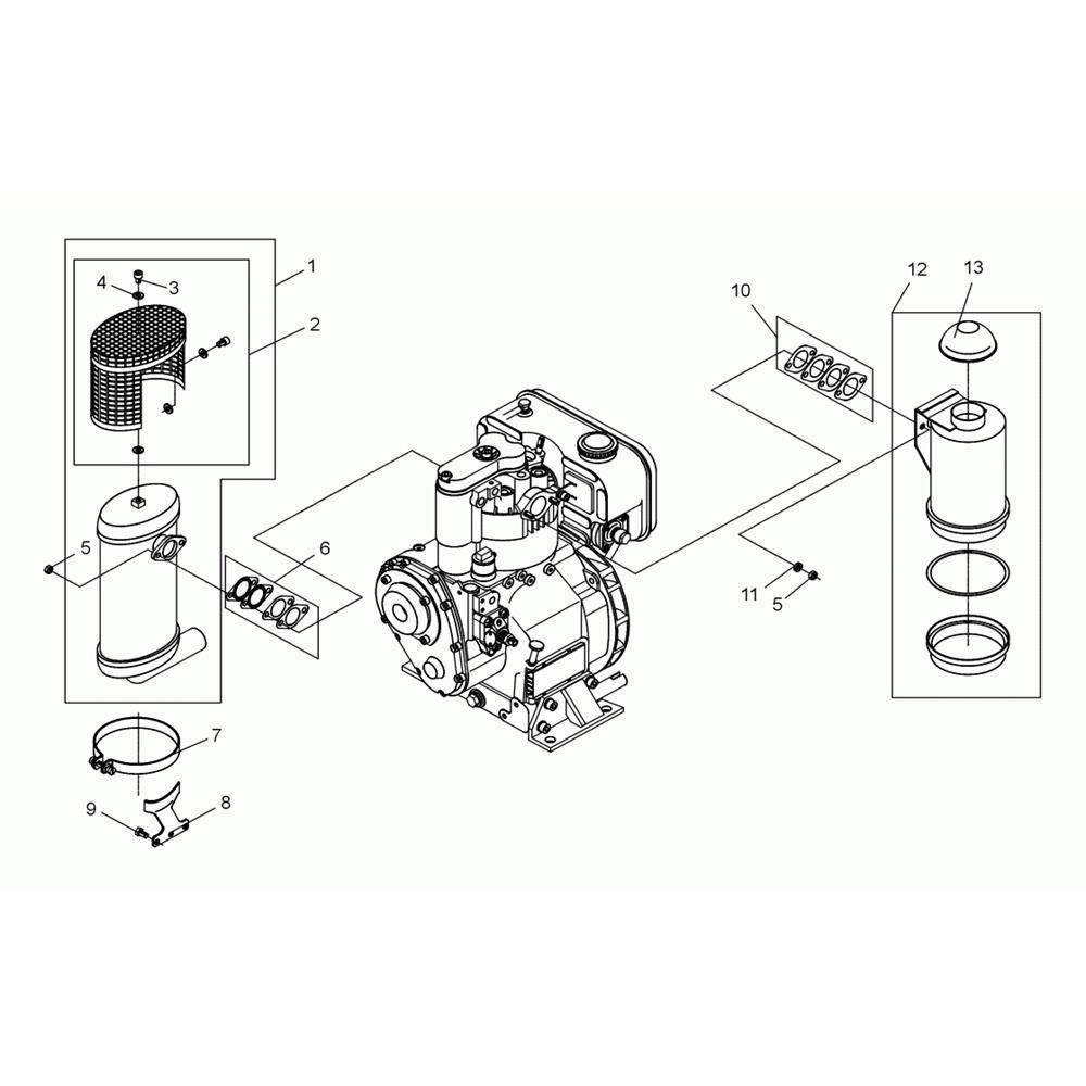 The Muffler Assembly for the Wacker DPS3060 Plate Compactor is designed to reduce noise and emissions, ensuring efficient operation. This assembly includes components such as the muffler, gaskets, and mounting brackets, which are essential for maintaining optimal performance. Suitable for routine maintenance and repair, it helps prolong the machine's lifespan by effectively managing exhaust flow.