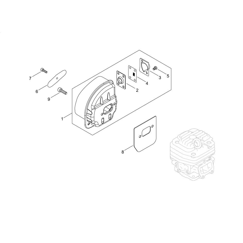 The muffler for the Shindaiwa 390SX Chainsaw is designed to reduce noise and direct exhaust gases safely away from the user. This genuine Shindaiwa part ensures optimal performance and longevity of your chainsaw. It is essential for maintaining the efficiency and safety of the machine during operation.