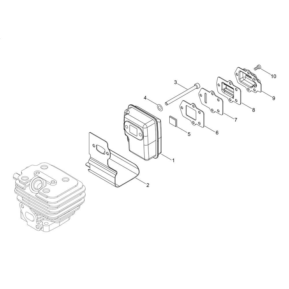 The muffler for the Shindaiwa EB250 Blower is designed to reduce noise and improve exhaust efficiency. As a genuine Shindaiwa part, it ensures compatibility and optimal performance. This component plays a crucial role in maintaining the blower's functionality by managing exhaust emissions and noise levels. Suitable for routine maintenance and repairs.