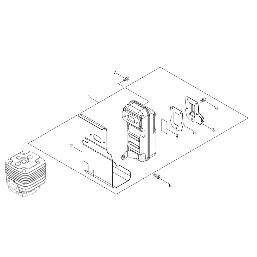 The muffler for the Shindaiwa EB600RT Blower is designed to reduce noise and improve engine efficiency. This genuine Shindaiwa part ensures optimal performance by effectively managing exhaust gases. Ideal for maintaining the blower's functionality, it helps in reducing emissions and enhancing the overall lifespan of the machine.