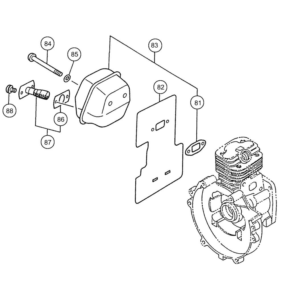 The muffler for the Tanaka THB2510 Blower is designed to reduce noise and improve exhaust flow, ensuring efficient operation. As a genuine Tanaka part, it fits perfectly and maintains the blower's performance. This component is essential for keeping the engine running smoothly and quietly, contributing to the longevity of the machine.