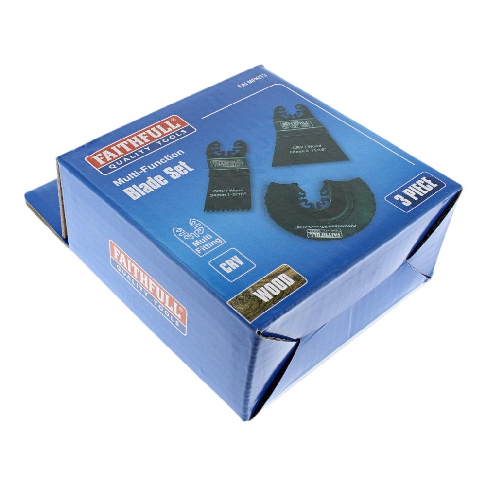 The Faithfull Multi-Function Tool Blade Set 3 Piece is a versatile accessory pack designed for use with a wide range of multi-function oscillating power tools, including models like the DTM51ZJX7. This set includes three of the most popular wood cutting blades, each crafted from high-quality CrV (Chromium Vanadium) steel for enhanced durability and performance. The blades are engineered to deliver precise and efficient cutting in various materials such as soft wood, plastics, plasterboard, and plastic pipes. Whether you're a tradesperson or a DIY enthusiast, this blade set offers the reliability and versatility needed for a multitude of cutting tasks.