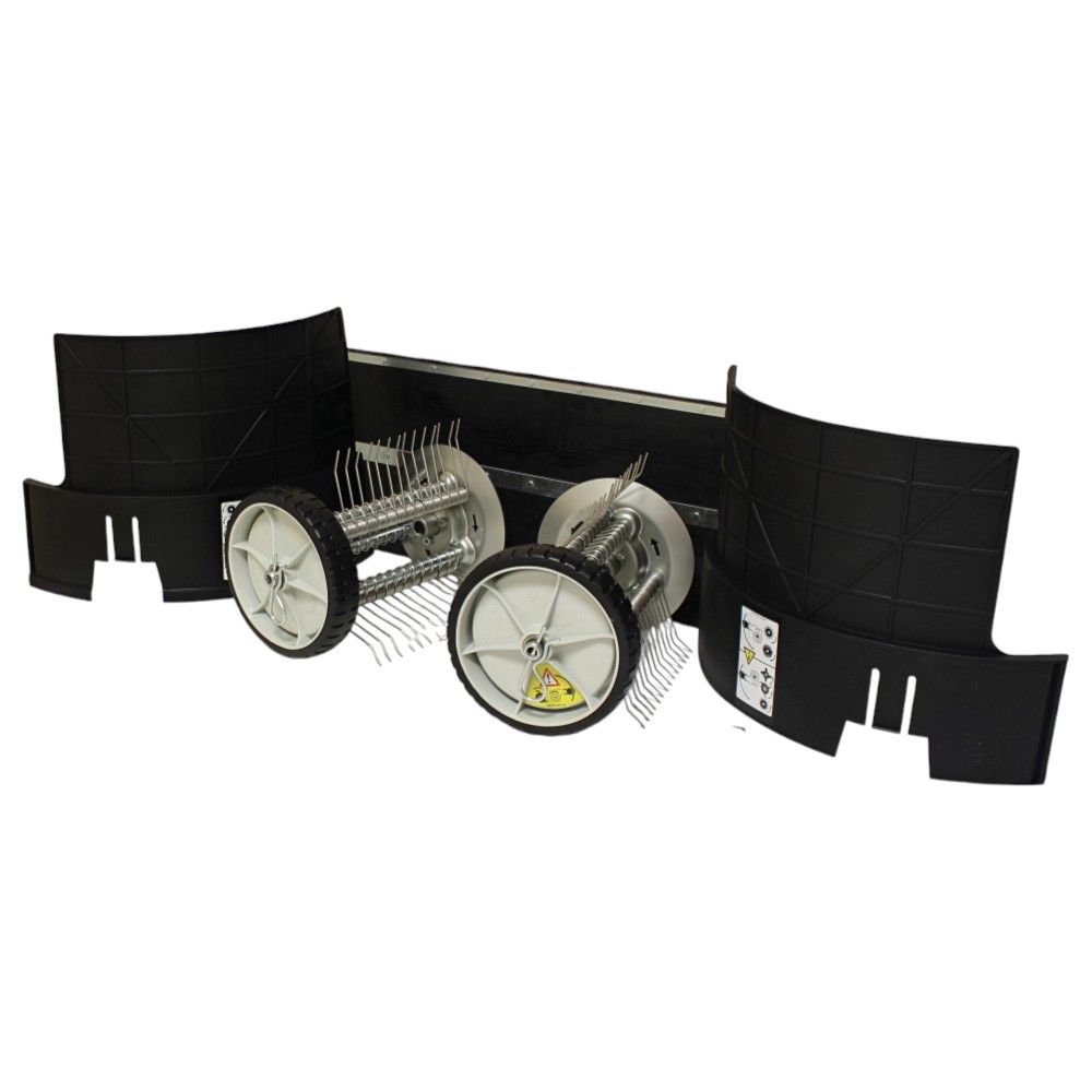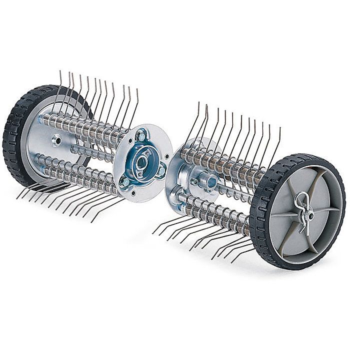 This attachment is also referred to as a lawn dethatcher, moss remover, or grass comb, making it a crucial component for comprehensive lawn care.
