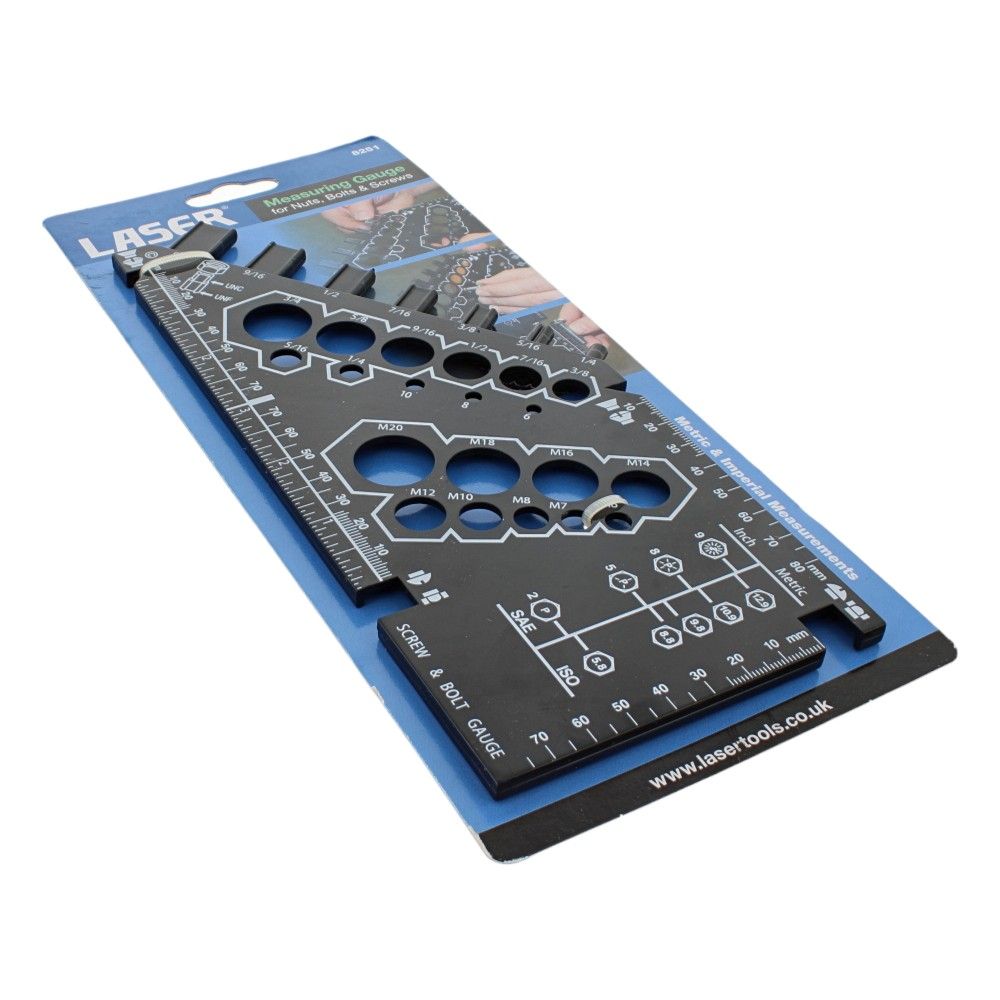 This easy to read gauge is made from tough ABS plastic and provides a quick and easy way to measure the size of nut, bolts, and screws. It is suitable for use on both metric and imperial fixings and can also be used to determine whether a nut is UNC or UNF, taking the trial and error away from selecting the correct replacement size.