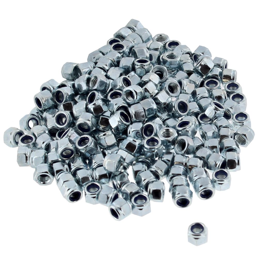| Key Features | - M5 metric thread fits common bolts and machine screws - DIN 982 Type P full-height nyloc design - Zinc-plated steel resists rust and corrosion - Nylon insert prevents loosening under vibration - Supplied in a bulk pack of 200 nuts |