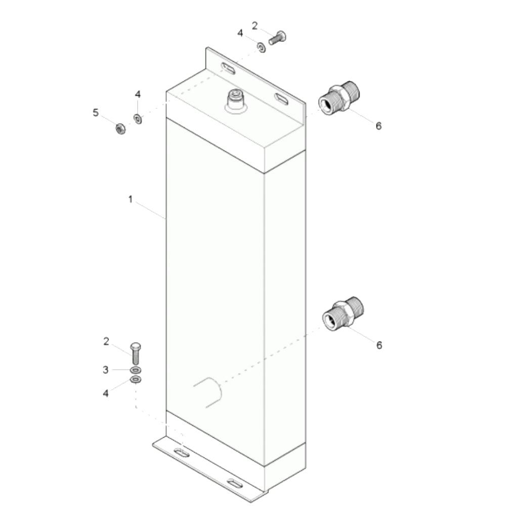 The Oil Cooler Assembly for the Wacker 3001AE Dumper is designed to maintain optimal engine temperature by dissipating excess heat. This assembly is crucial for preventing overheating and ensuring efficient operation. It includes components such as hoses, clamps, and seals, all tailored to fit the Wacker 3001AE model, ensuring reliable performance and longevity.