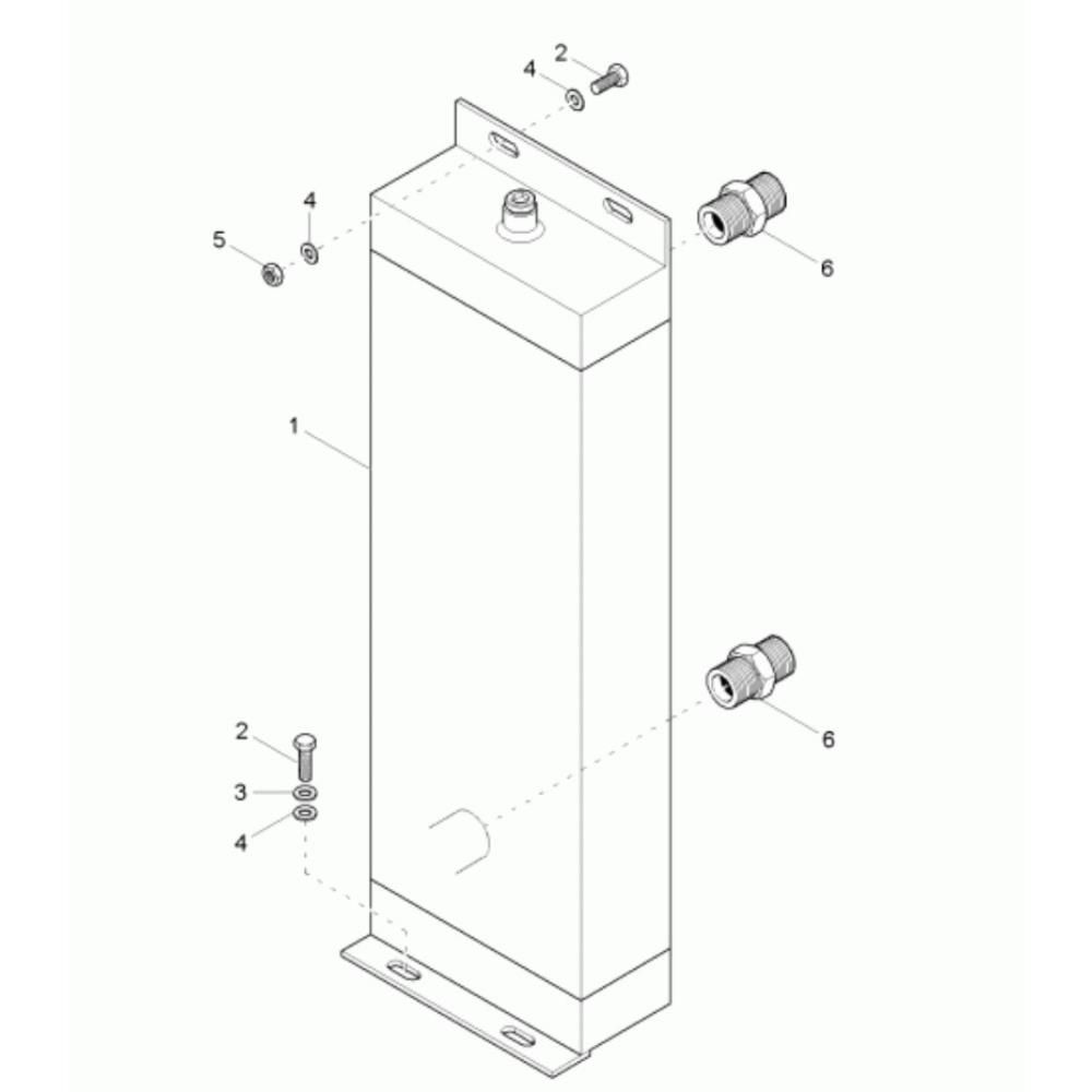 The Oil Cooler Assembly for the Wacker 5001 Dumper is designed to maintain optimal engine temperature and performance. It includes components such as hoses, clamps, and seals to ensure efficient cooling and prevent overheating. This assembly is crucial for the longevity and reliability of the dumper, helping to protect the engine from excessive heat.
