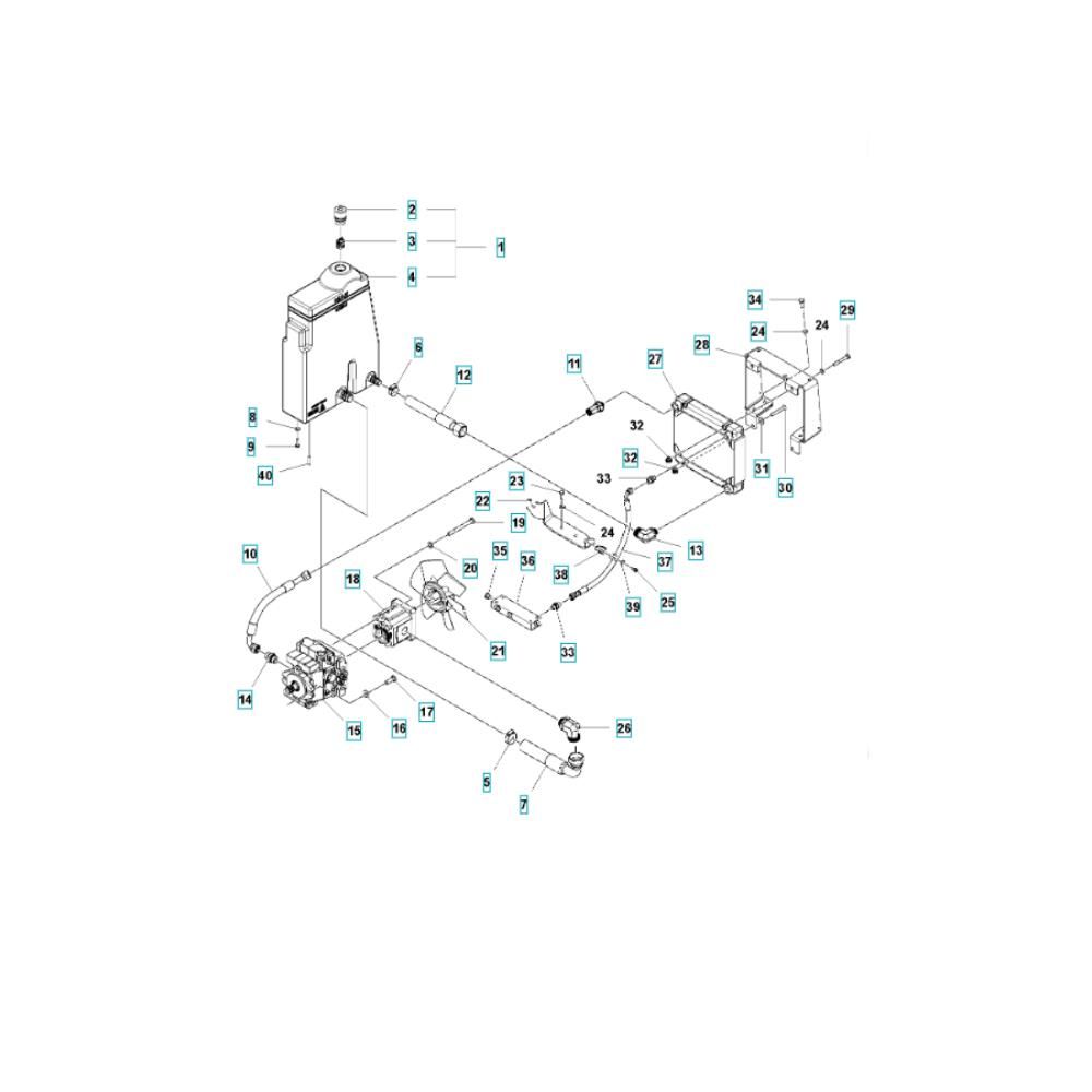 The Oil Tank, Radiator, Pump Assembly for the Husqvarna LP 7505 Roller includes key components to ensure optimal performance and longevity. This assembly is crucial for maintaining the roller's hydraulic and cooling systems. Components such as the oil tank, radiator, and pump work together to regulate temperature and fluid flow, reducing wear and enhancing efficiency.