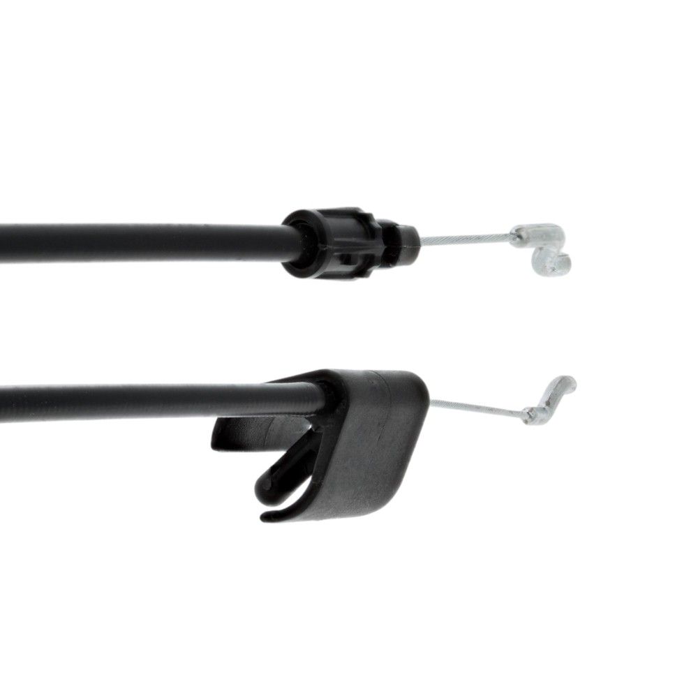 Operator presence control cable, engine stop cable, safety stop cable, dead‐man handle cable, brake cable, control bail cable, mower stop/throttle interlock cable.