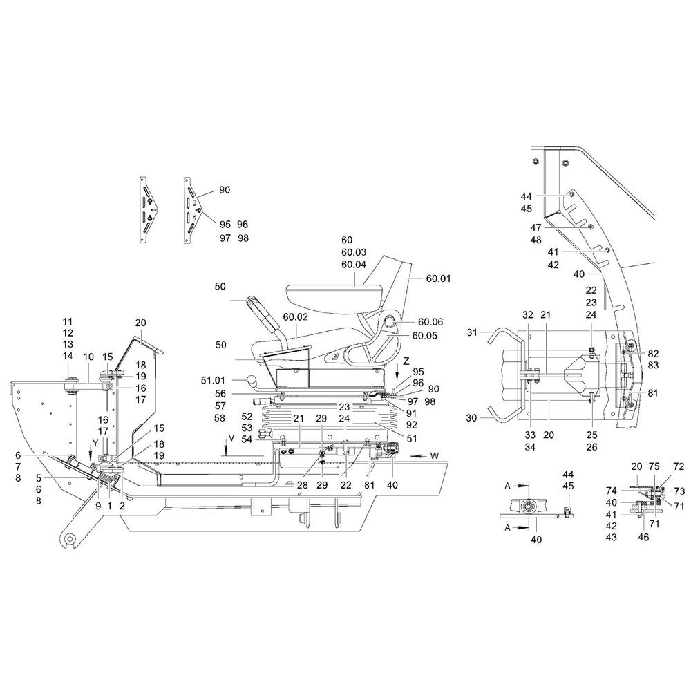 The Operators Seat Assembly for Hamm HD90 (H245) Rollers is designed to enhance operator comfort and control. This assembly includes components such as seat cushions, adjustment levers, and mounting brackets, ensuring a secure and ergonomic seating position. Genuine Hamm parts guarantee compatibility and durability, essential for maintaining optimal performance in demanding construction environments.