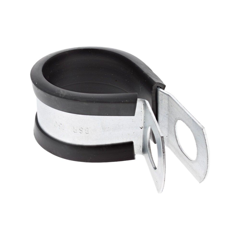 P-clip, rubber-lined clamp, cushioned P clamp, pipe support clip, loom retaining clamp, conduit clip, line support clamp, rubber-lined pipe clip.