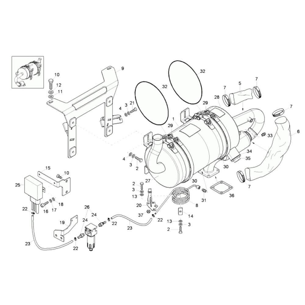 The Particulate Filter Assembly for the Wacker 50Z3 Mini Excavator is designed to maintain optimal engine performance by filtering out harmful particles. This assembly includes components such as filters, seals, and clamps, ensuring efficient operation and protection against dust and debris. Essential for routine maintenance, it helps extend the service life of your excavator.