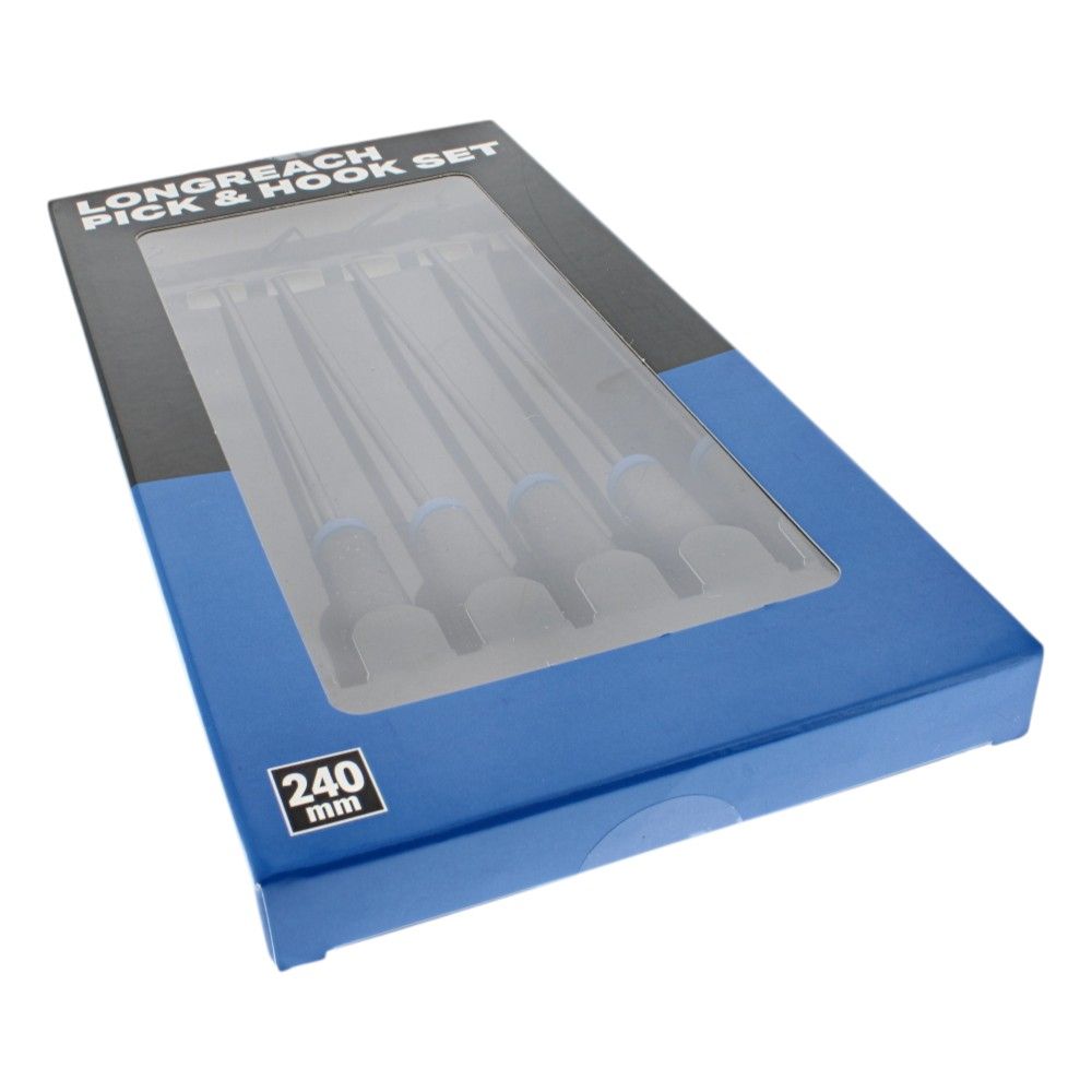 - 6-piece extra-long pick and hook set for improved access in confined spaces