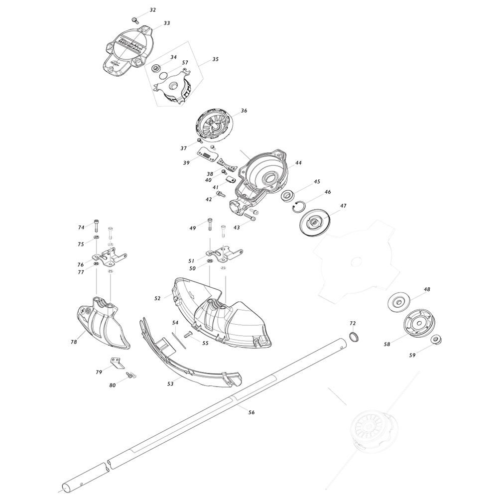 The Pipe, Shield Assembly for the Makita UR002G Cordless Trimmer includes essential components to ensure optimal performance and protection during trimming tasks. This assembly helps safeguard the trimmer's operation by providing a robust shield and reliable pipe structure. Designed for durability and efficiency, it is ideal for maintaining garden edges and tackling overgrown areas.