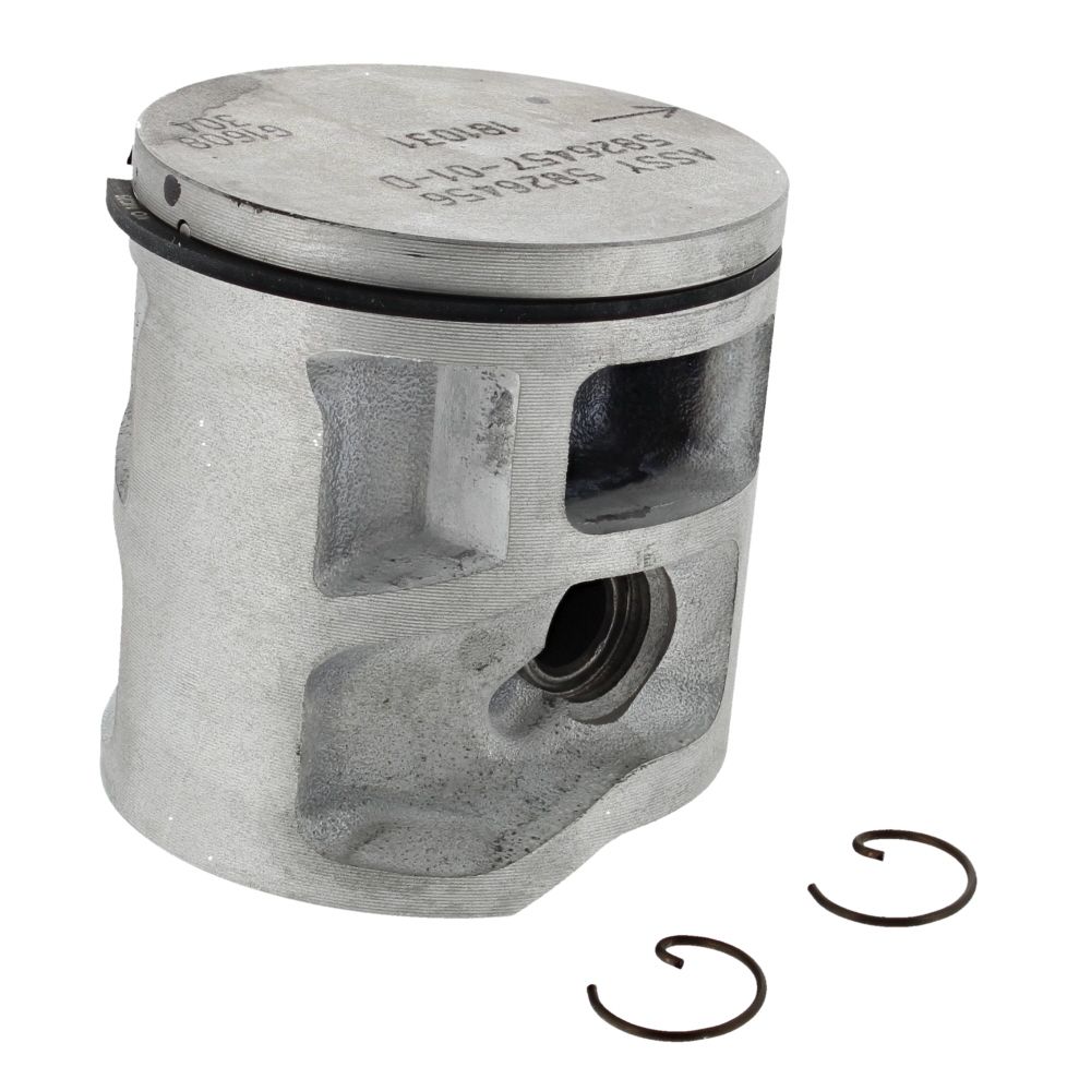 Piston kit, engine piston, piston and ring set, top-end kit, piston and gudgeon pin set, wrist pin and circlip set, replacement piston assembly for Husqvarna 50 cc-class saws, top-end rebuild piston.