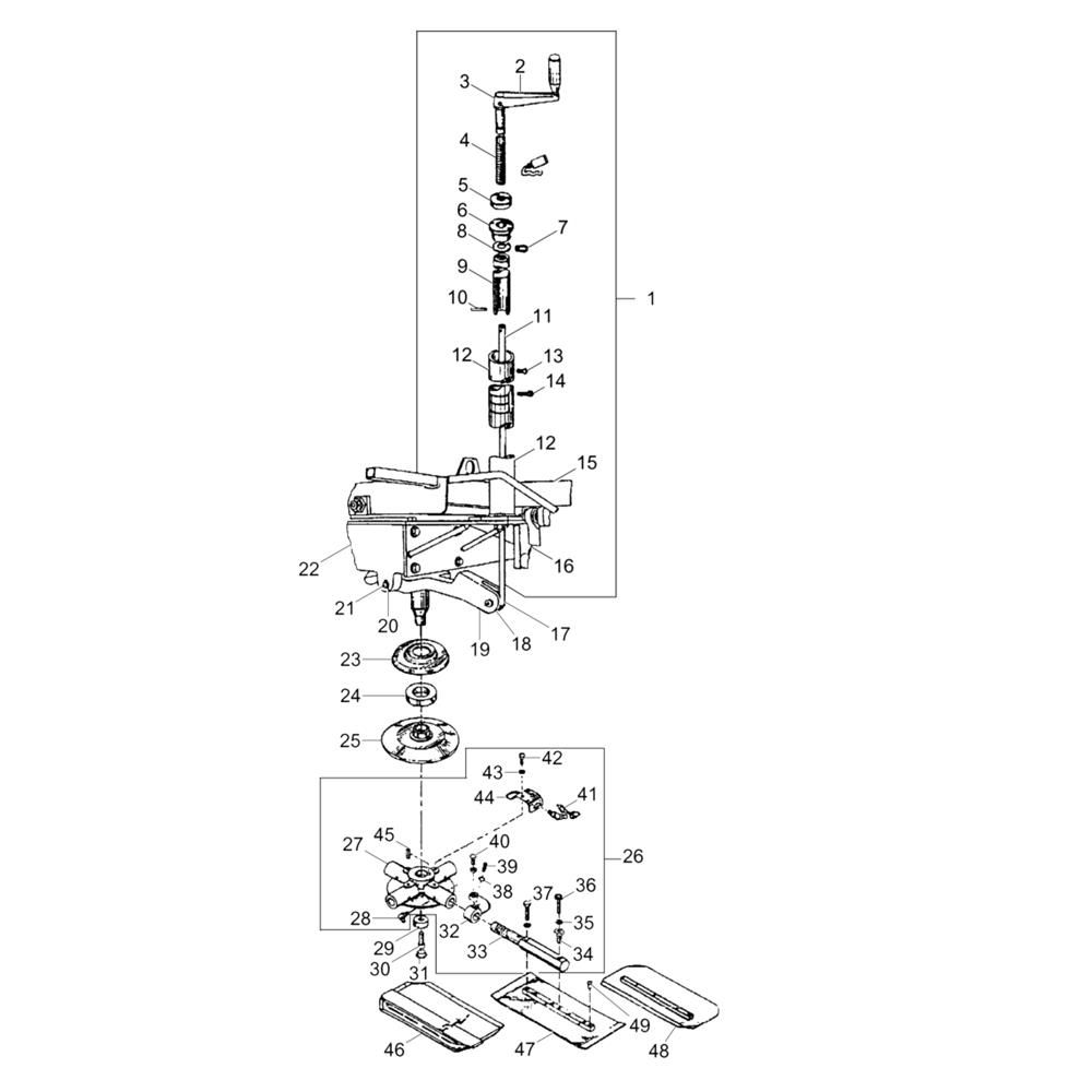 The Pitch Control (Right) Assembly for the Wacker CRT 36 ASN Trowel is essential for precise operation and control. This assembly includes components such as levers and springs, ensuring optimal performance and durability. Designed for the Wacker Neuson Ride-On Trowel, it helps maintain the machine's efficiency and reliability during use.