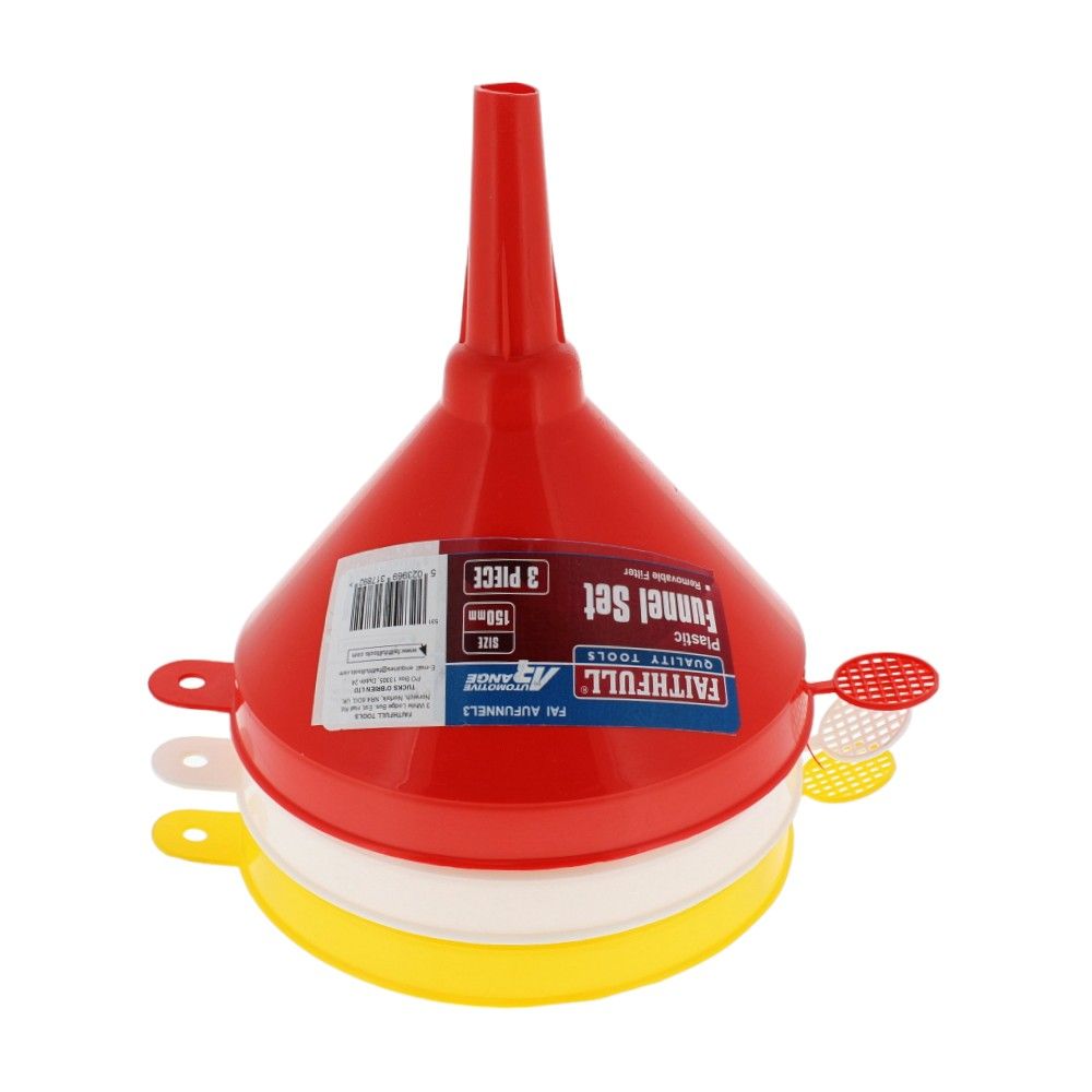 3 Piece Funnel Set, Plastic Funnel Kit, Mechanics Funnel, Oil Filling Funnel, Workshop Funnel Set, Wide-Mouth Funnel, Strainer Funnel, Utility Funnel Set.