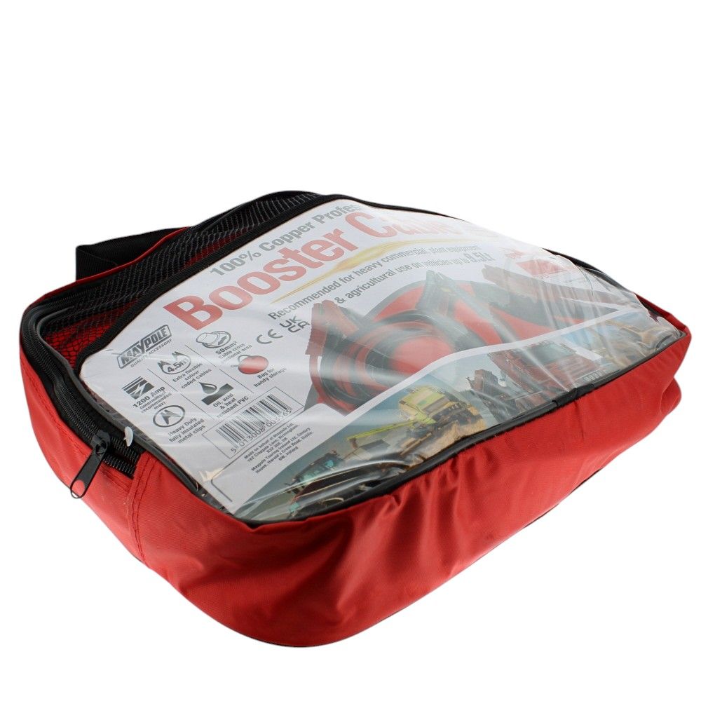 The Professional Booster Cable 50mm x 4.5 m Jump Leads is a high-quality solution designed for powering up heavy commercial vehicles, plant equipment, and agricultural machinery. Made by Maypole, this genuine part (OEM No. MP356) features robust construction with 100% copper cables and heavy-duty metal clips, ensuring superior conductivity and reliability. The jump leads are ideal for demanding professional applications, offering a peak output of 1200A to support engine sizes up to 9500cc. With its durable design and extended length, this jump lead is an essential tool for automotive and industrial professionals.