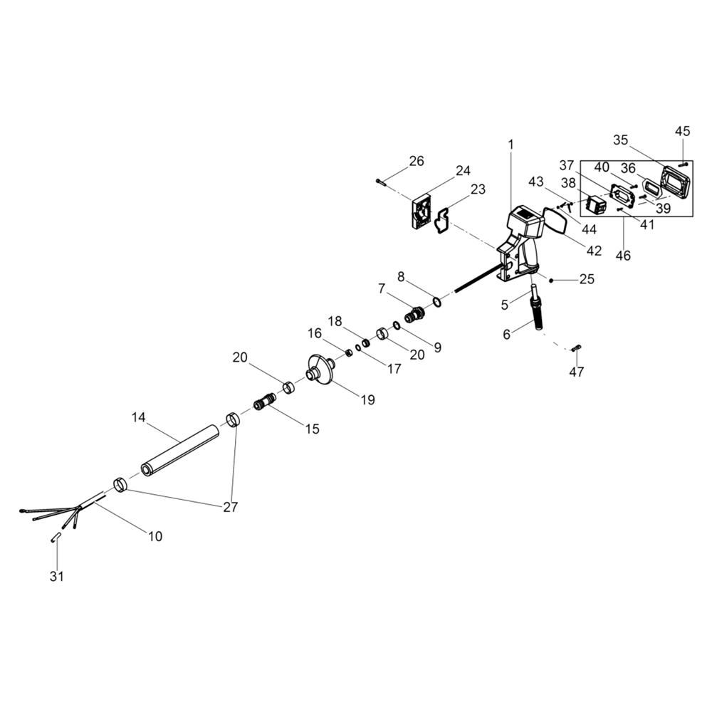 The Protective Hose Assembly for the Wacker IRSE-FU 30/120 Vibrator is designed to safeguard the internal components during operation. This assembly is crucial for maintaining the efficiency and longevity of the vibrator, ensuring it operates smoothly by protecting against wear and tear. Available components include hoses, clamps, and seals, tailored to fit the Wacker Neuson model.