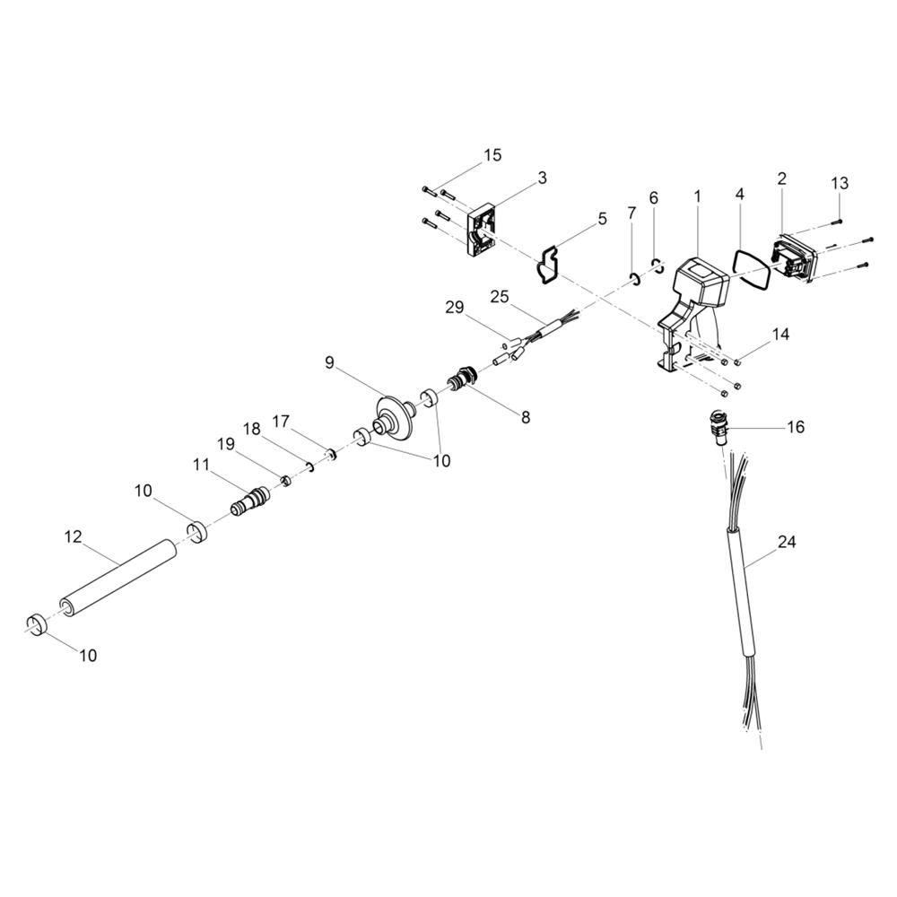 The Protective Hose Assembly for the Wacker IRSEN 45 Vibrator is designed to safeguard the internal components of the vibrator, ensuring optimal performance and longevity. This assembly includes genuine Wacker Neuson parts, providing reliable protection against wear and tear during operation. Essential for maintaining the efficiency of the vibrator, it helps in reducing downtime and repair costs.