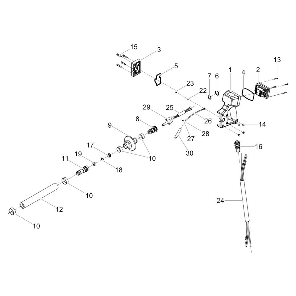 The Protective Hose Assembly for the Wacker IRSEN-FU 45/230 Vibrator is designed to safeguard internal components and ensure efficient operation. This assembly includes genuine Wacker Neuson parts, providing durability and reliability. Essential for maintaining the vibrator's performance, it helps protect against wear and damage during use.