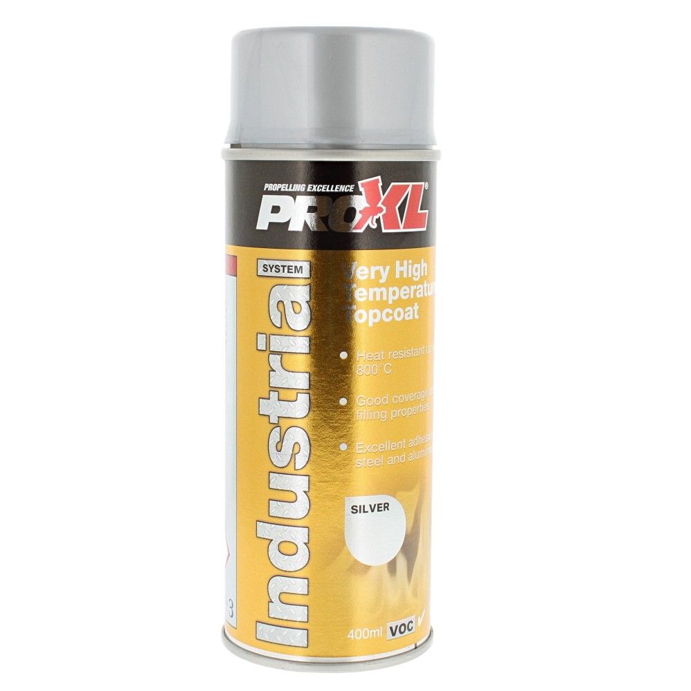 The Proxl Industrial High Temperature Aerosol Silver (400 ml) is a heat‐resistant spray coating for metal parts on construction and garden machinery. It lays down a durable silver finish that helps protect components exposed to sustained heat and periodic thermal cycling. Formulated for adhesion to prepared metal, it is suitable for exhaust guards, silencers, heat shields, engine covers, and other hard‐working parts on compactors, generators, mowers, and similar equipment. The 400 ml aerosol can delivers a fine spray pattern for even coverage on complex shapes, brackets, and grilles, helping you restore appearance while adding a protective layer. Designed for both site and workshop use, it supports routine maintenance, refurbishment, and touch‐ups where reliable performance under heat is essential.
