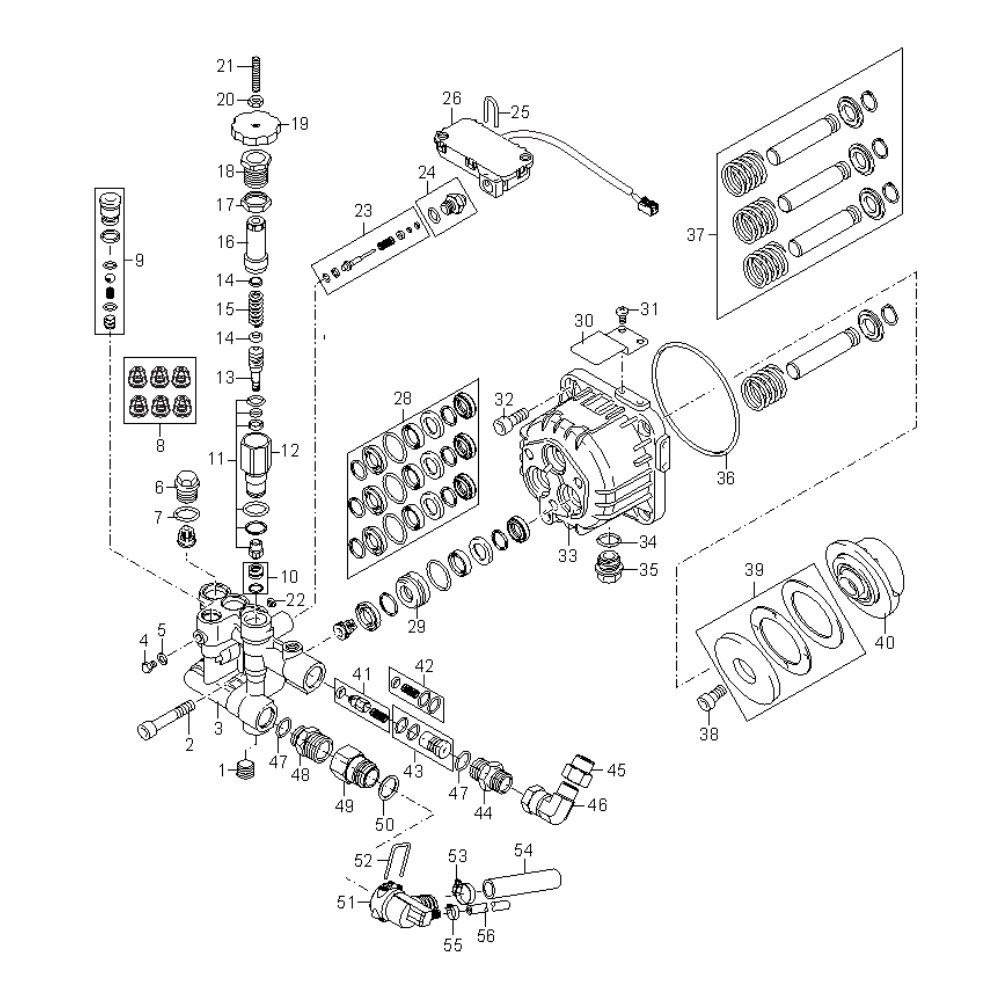 The Pump Assembly for the Nilfisk MH 3C-90/670 PAX 230/1/50 Pressure Washer is designed to ensure optimal performance and longevity. This assembly includes key components such as seals, valves, and pistons, which work together to maintain high pressure and efficient water flow. Regular maintenance with genuine parts helps prevent wear and extends the life of your pressure washer.