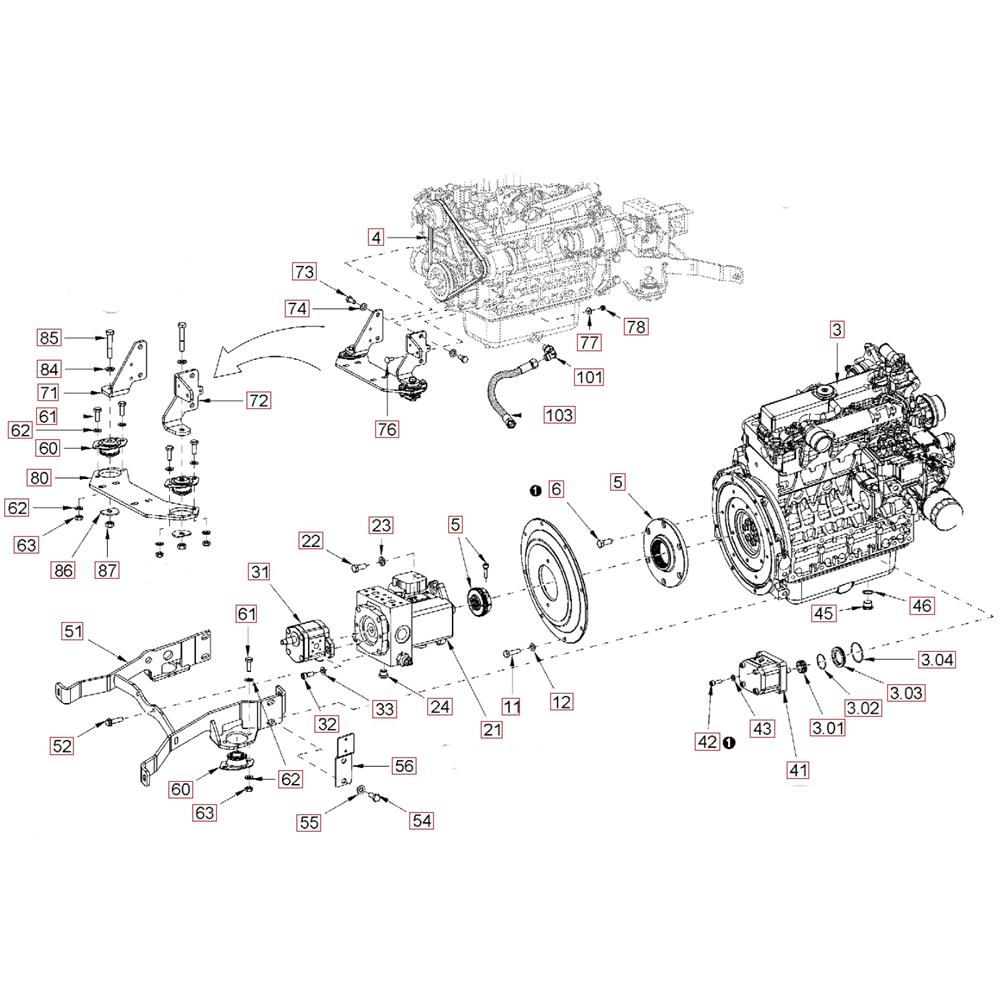The Pump Drive and Engine Assembly for the Hamm HD50 (H290) Compaction Roller includes key components essential for optimal machine performance. This assembly ensures efficient power transmission and engine operation, vital for compaction tasks. Components such as pumps, drives, and engine parts are available, supporting both genuine and non-genuine options for maintenance and repair.