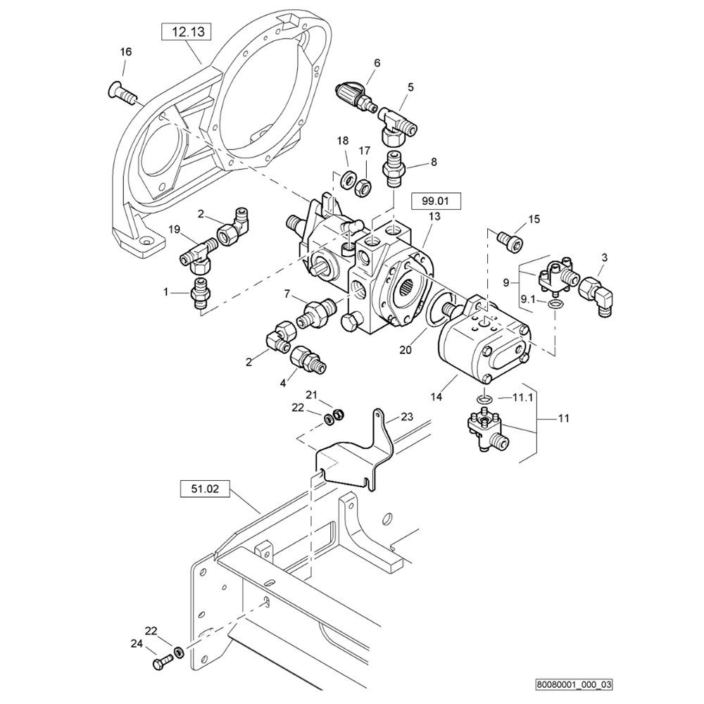 This pump mounting assembly is designed for the Bomag BW 80 AD-2 roller, ensuring optimal performance and durability. It includes essential components that facilitate secure and efficient pump installation, contributing to the machine's reliable operation. Suitable for specific serial numbers, this assembly is crucial for maintaining the roller's functionality.