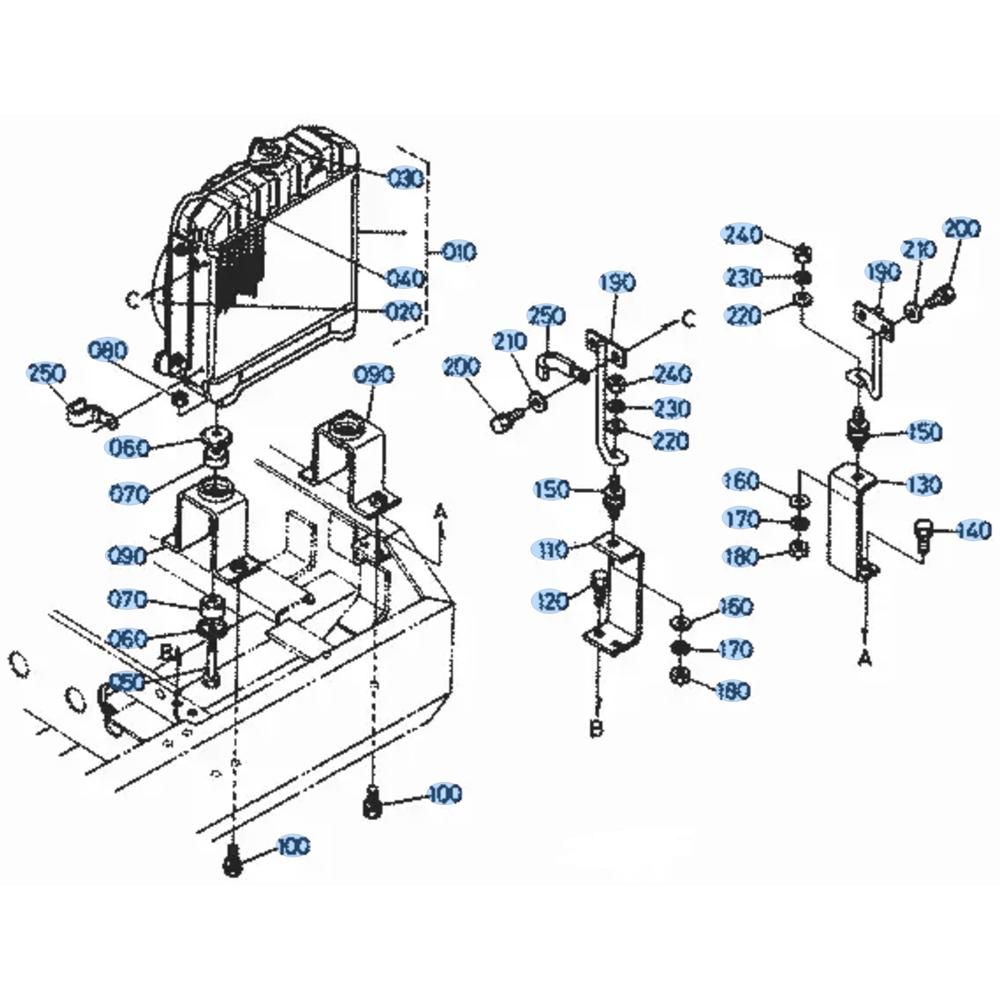 The Radiator Assembly for the Kubota KH36 Mini Excavator is designed to ensure optimal engine cooling and efficiency. This assembly includes key components such as the radiator core, hoses, and clamps, which work together to dissipate heat and maintain engine temperature. Essential for routine maintenance, it helps prevent overheating and prolongs the life of your excavator.