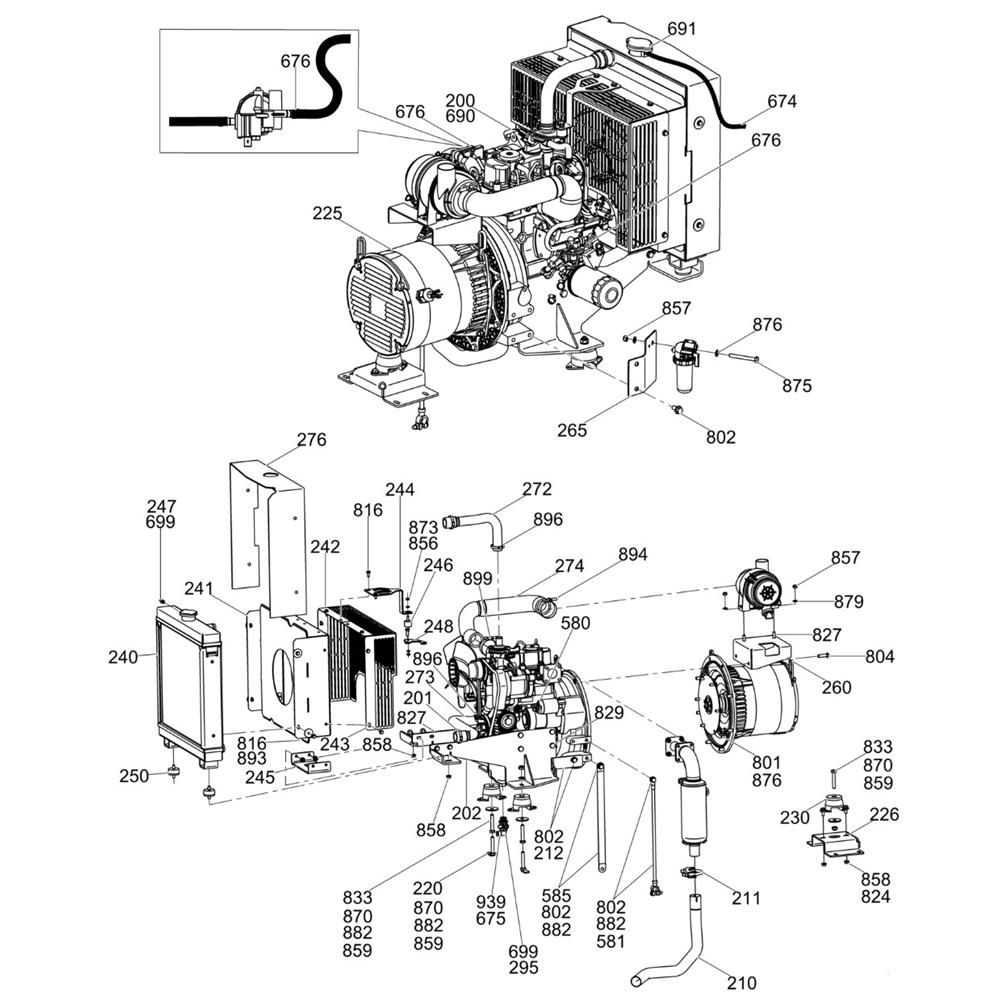 The Radiator Assembly for the Wacker Neuson LTV4K Lighting Tower is essential for maintaining optimal engine temperature and performance. This assembly includes components like hoses, clamps, and seals, ensuring efficient heat dissipation and preventing overheating. Designed for durability, it supports the reliable operation of your lighting tower in various conditions.
