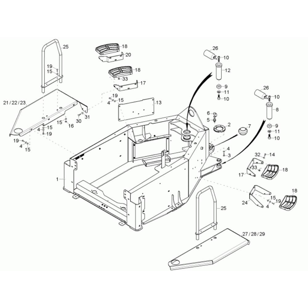 The Rear Frame Assembly for the Neuson 10001 Dumper is crucial for maintaining the structural integrity and performance of the machine. This assembly includes components such as brackets, mounts, and supports, ensuring stability and durability during operation. Designed specifically for the Neuson 10001, it provides reliable support and alignment for the dumper's rear section.