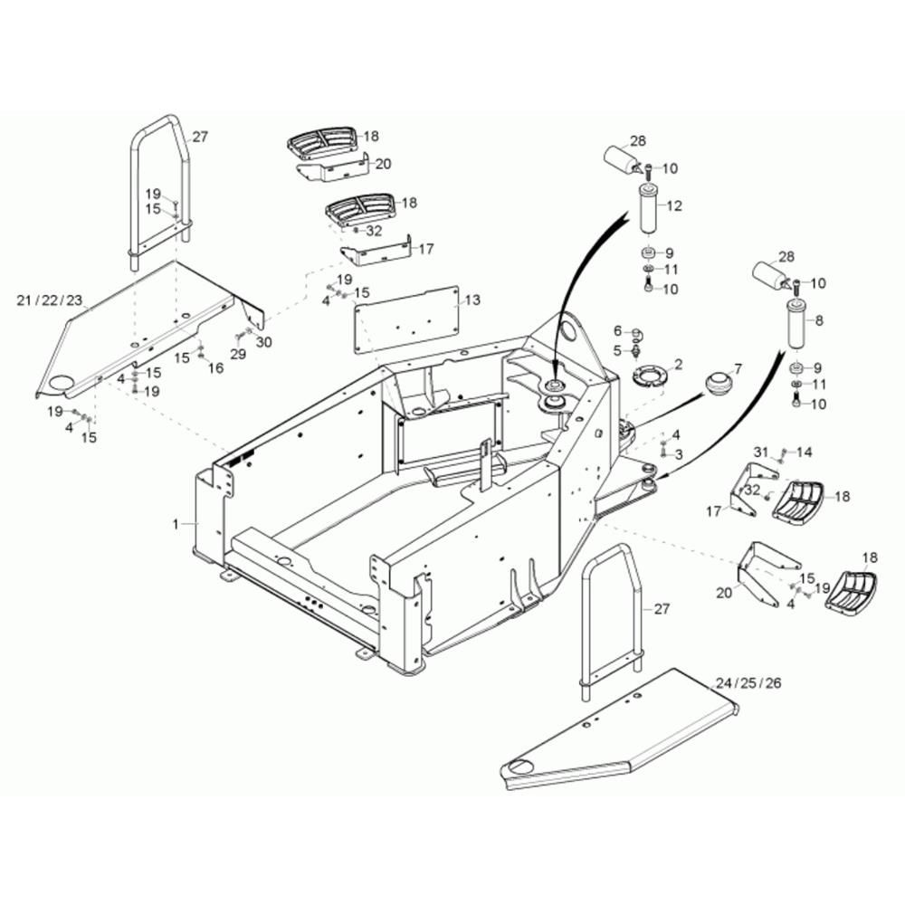 The Rear Frame Assembly for the Neuson 6001 Dumper is a crucial component designed to support the machine's structure and ensure stability during operation. This assembly includes various parts such as brackets, mounts, and connectors, all essential for maintaining the integrity and performance of the dumper. Genuine Wacker Neuson parts ensure compatibility and reliability.