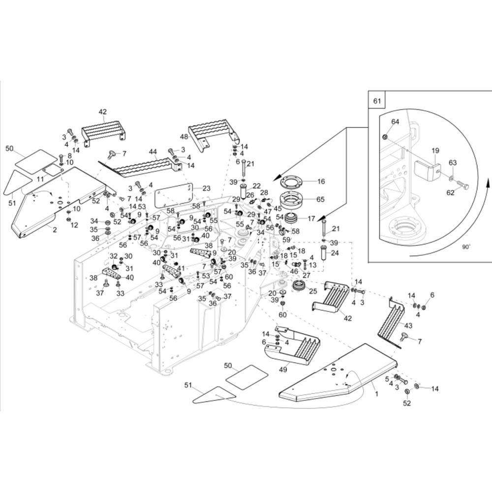 The Rear Frame Assembly for the Wacker Neuson DW90 Dumper is crucial for maintaining the structural integrity and performance of the machine. This assembly includes components such as brackets, mounts, and supports, ensuring the dumper operates efficiently and safely. Designed for durability, these parts help withstand the rigours of heavy-duty use, providing reliable support for the dumper's rear section.