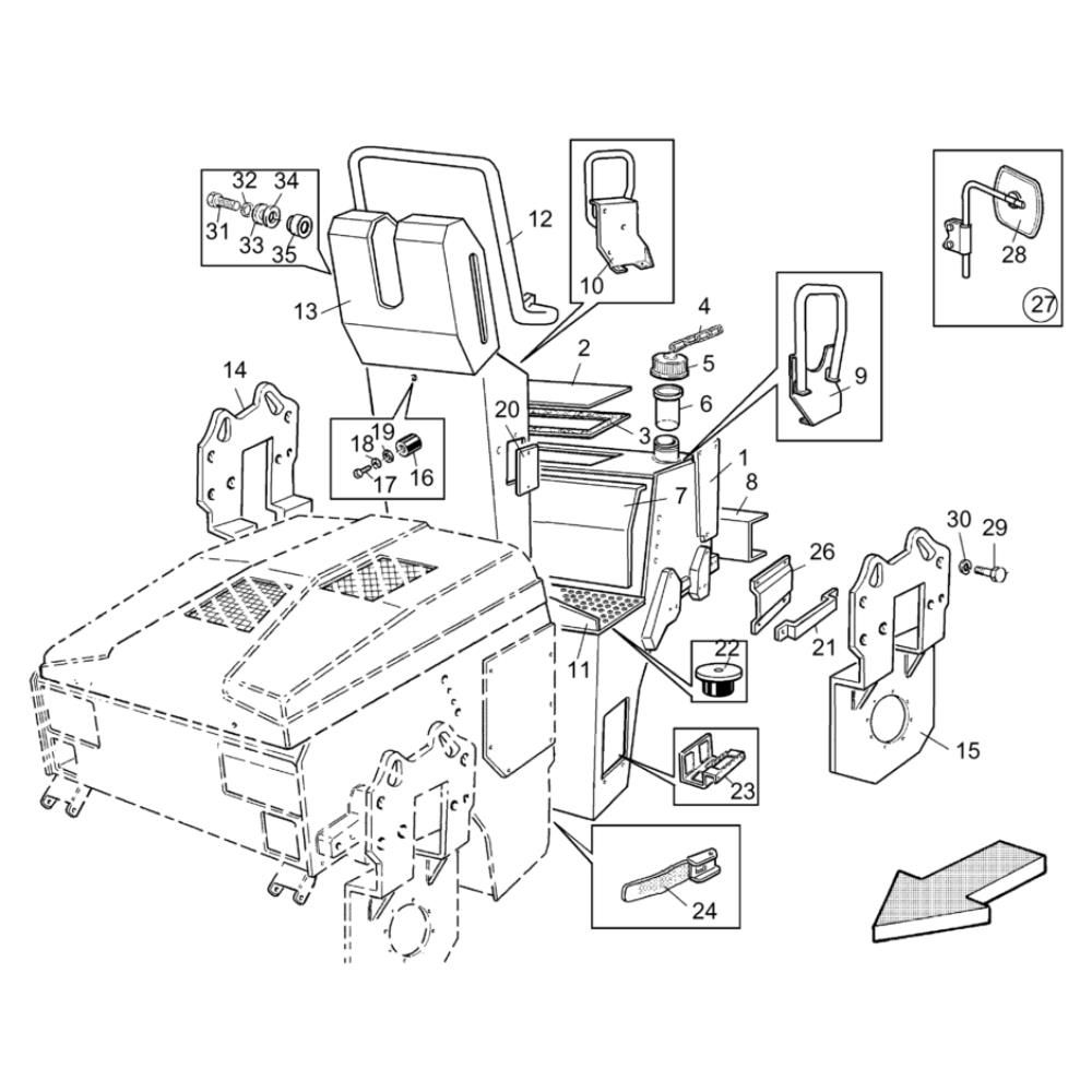 The Rear Frame Assembly for the Wacker RD15 Roller is essential for maintaining the structural integrity and performance of the machine. This assembly includes genuine Wacker Neuson parts designed to fit seamlessly with the RD15 model. Components such as brackets, mounts, and connectors ensure stability and durability during operation, making it a crucial part of the roller's overall functionality.