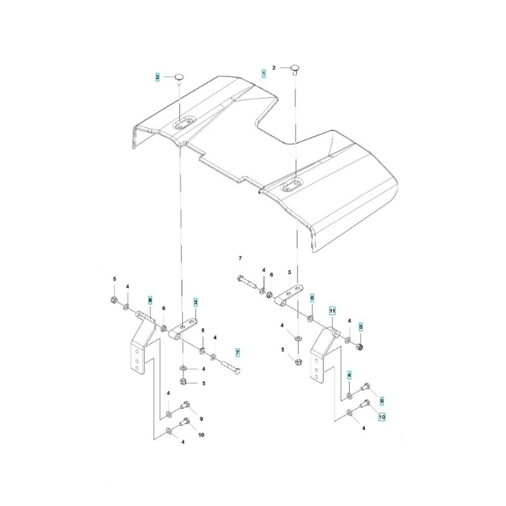 The Rear Hood Assembly for the Husqvarna LP 7505 Roller is essential for protecting internal components and ensuring optimal machine performance. This assembly includes parts designed to fit seamlessly with the roller, providing durability and reliability. Typical components may include brackets, fasteners, and protective covers, all contributing to the machine's efficient operation.