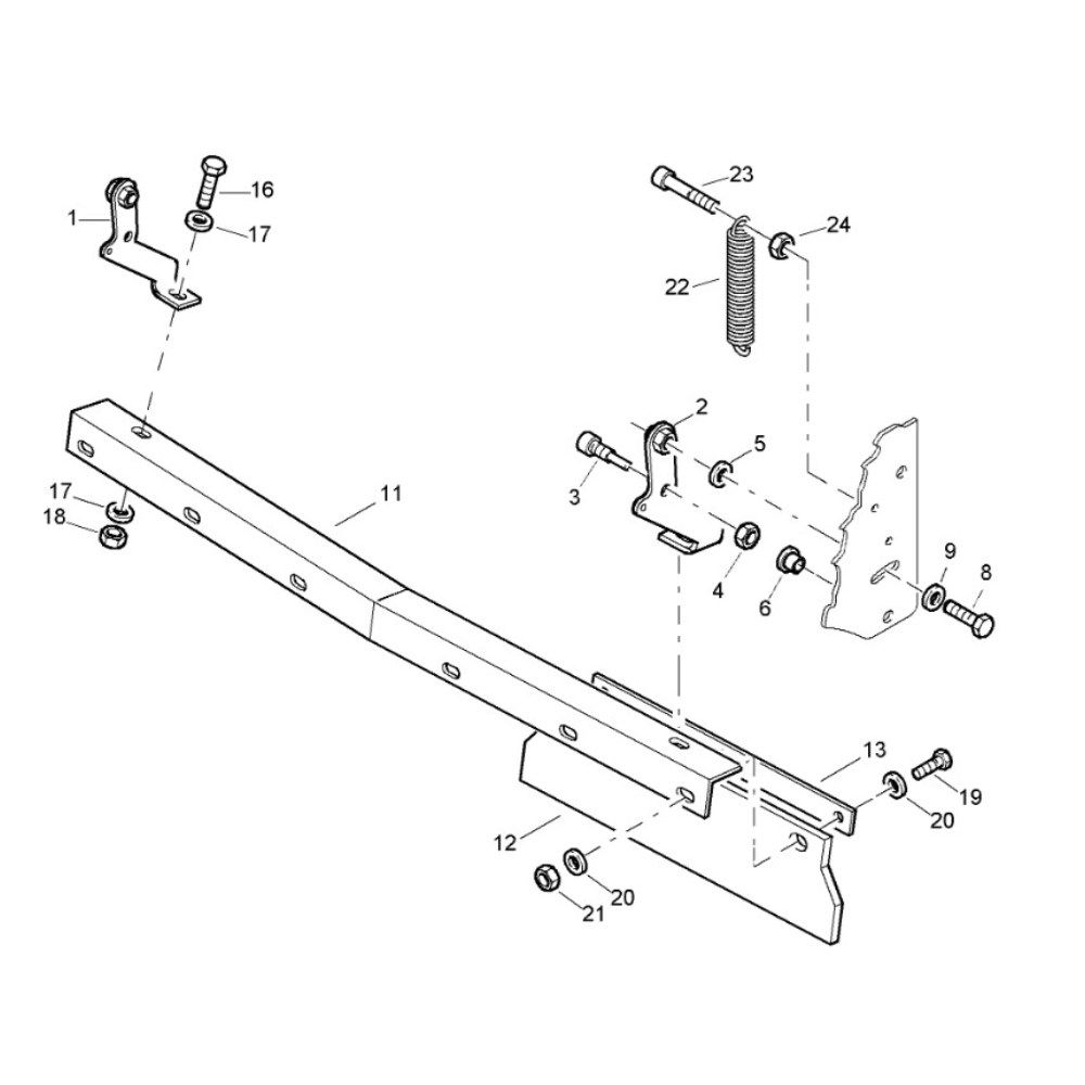 The Rear Scraper Assembly for the Bomag BW80 ADS Roller is designed to ensure optimal performance by maintaining clean surfaces during operation. This assembly includes components such as blades, brackets, and fasteners, which work together to effectively remove debris and prevent build-up on the roller. Essential for routine maintenance, it helps prolong the life of the machine.