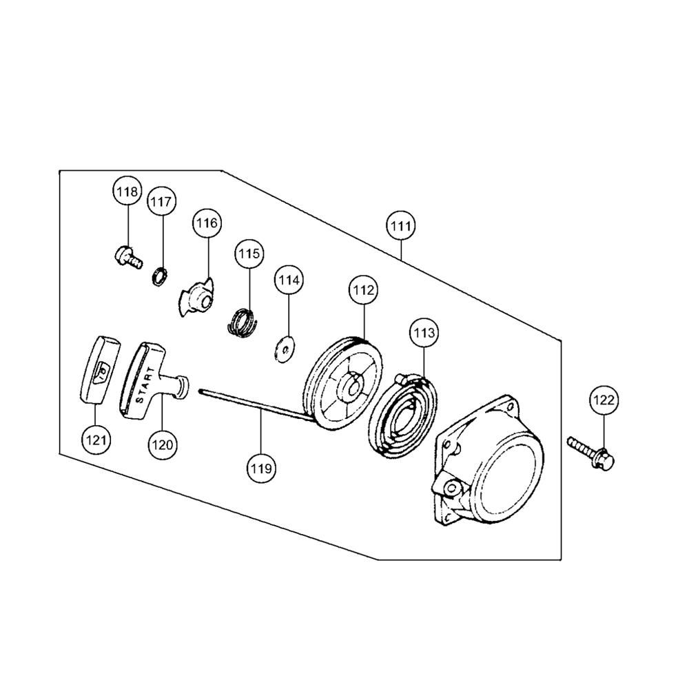 The Recoil Starter for the Tanaka TBL7800R Blower is designed to ensure reliable engine ignition and smooth operation. This essential component is crafted to fit seamlessly with the Tanaka blower, providing consistent performance. It includes a durable pull cord and housing, which are crucial for starting the engine efficiently. Ideal for routine maintenance and repair, this part helps maintain the blower's functionality.