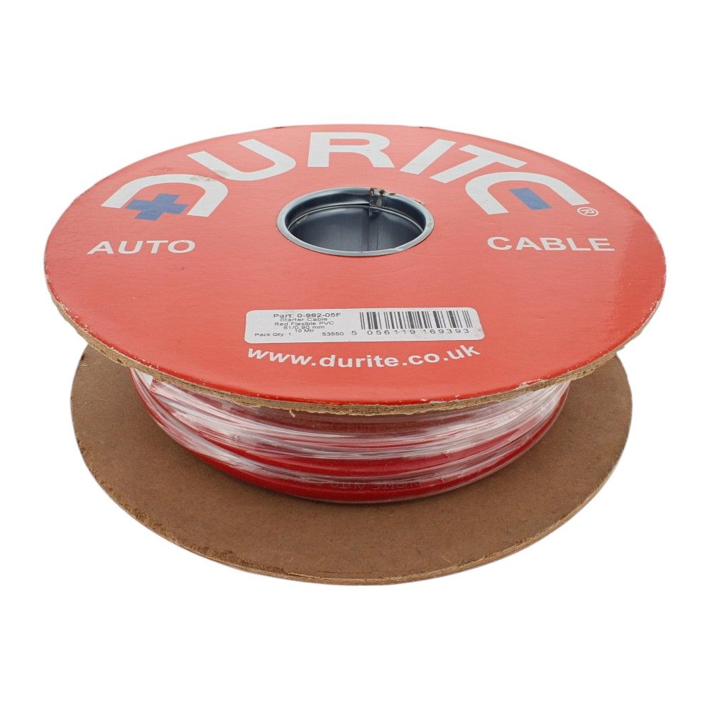The Copper Core PVC Starter Cable 40mm² x 10m (Red) is a high-quality, genuine product from Durite, designed to provide reliable electrical connections for a variety of machinery. Made with a robust copper core and insulated with durable PVC, this cable ensures excellent conductivity and protection against environmental factors. Ideal for use in construction and garden machinery, it supports efficient power transmission, making it a crucial component for both tradespeople and DIY enthusiasts. This cable is suitable for various applications, ensuring your equipment operates smoothly and efficiently.