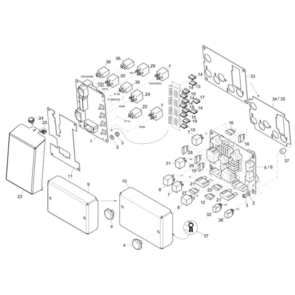The Relay Box (404F-22T) Assembly is designed for the Wacker EW65 Mini Excavator, ensuring optimal electrical performance. This assembly includes key components such as relays, connectors, and wiring, essential for maintaining the excavator's operational efficiency. Genuine Wacker Neuson parts guarantee compatibility and reliability, supporting the machine's electrical system.
