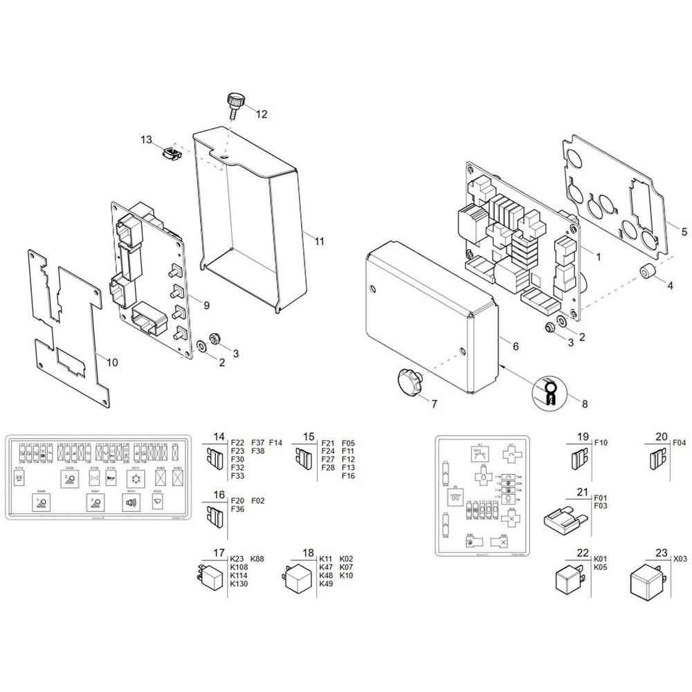 The Relay Box (404J-E22T) Assembly is designed for the Wacker ET65 Mini Excavator, ensuring optimal performance and reliability. This assembly includes essential components such as relays, connectors, and wiring, which are crucial for the electrical system's functionality. Genuine Wacker Neuson parts guarantee compatibility and durability, supporting efficient operation in various construction tasks.