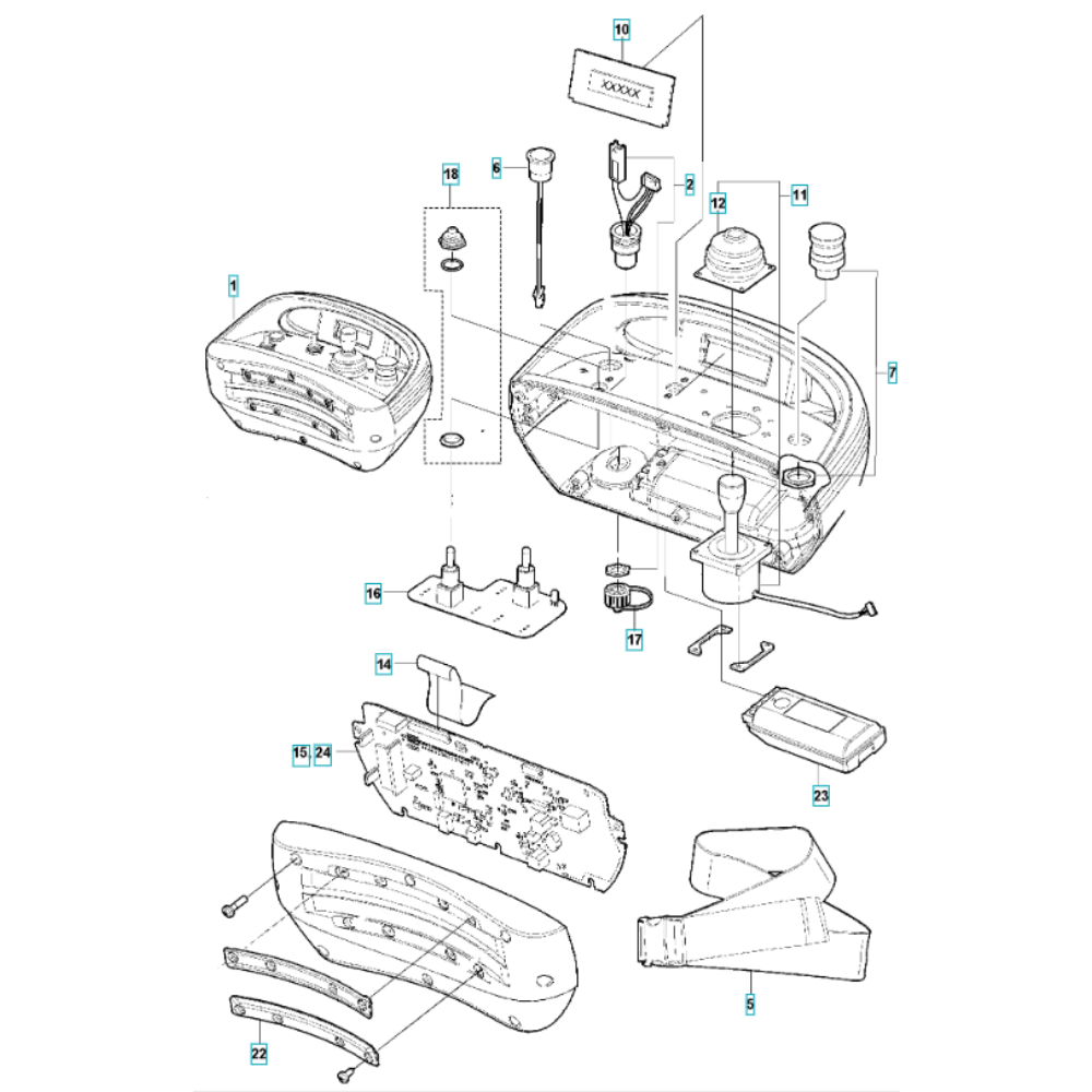 The Remote Control Assembly for the Husqvarna LH 804 Reversible Compactor is designed to enhance operational efficiency and safety. It includes components such as control levers, switches, and connectors, ensuring precise manoeuvrability and control. This assembly is crucial for maintaining the compactor's performance and reliability in demanding environments.