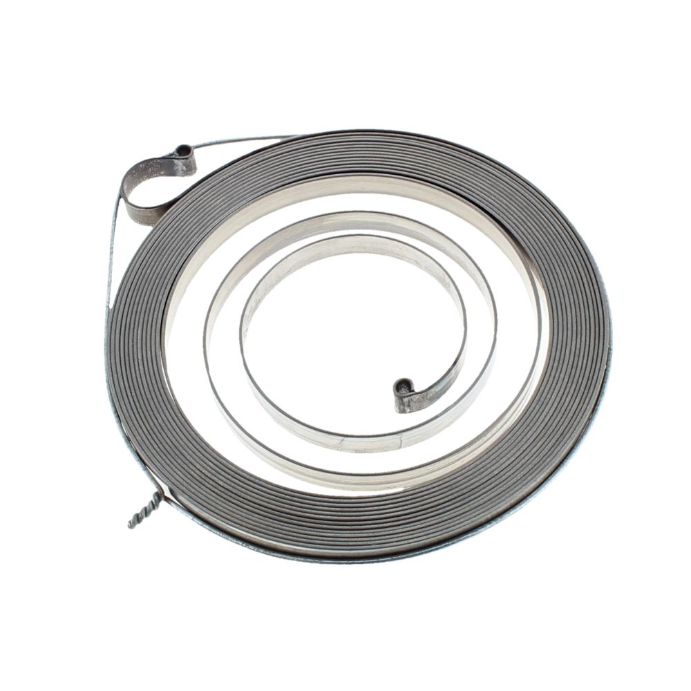 Recoil spring, pull-start spring, starter spring, starter recoil spring, recoil rewind spring, rope return spring for chainsaw starter assemblies.