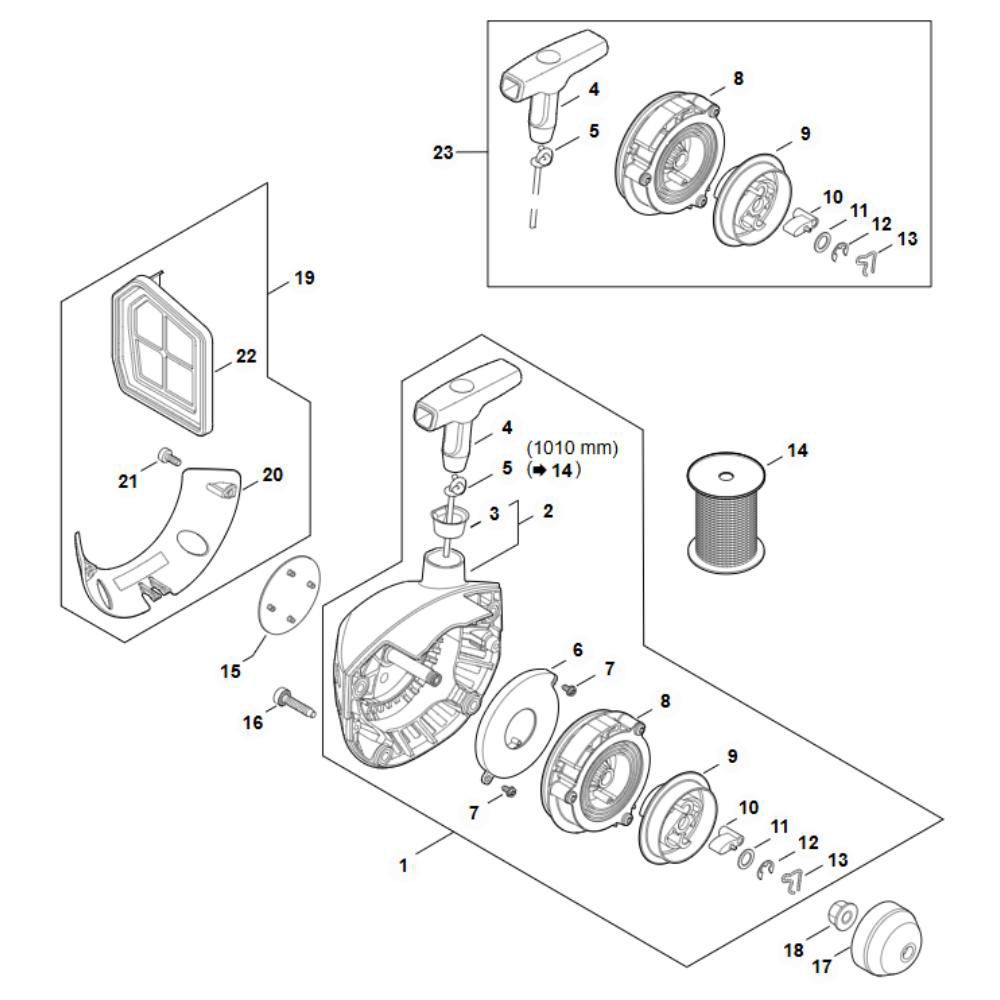 The Rewind Starter Assembly for Stihl FS 461C Brushcutters is a crucial component for ensuring reliable engine starts. This genuine Stihl part is designed to provide consistent performance and durability. It includes essential elements like the recoil spring, pulley, and starter rope, all working together to facilitate smooth and efficient engine ignition.